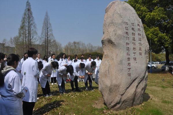 一年一清明,一岁一追思。2025年4月2日中午,同人小说 人体解剖学教研室联合校红十字会在“大爱”纪念碑前举办了以“生命的选择—缅怀‘大体老师’”为主题的活动,共同缅怀“大体老师”,表达对“大体老师”的尊敬与感恩之情。一同参加活动的有同人小说 同人小说 党委副书记、副院长马杰,“融创”导师团导师代表、解剖学教研室教师、青年教师班主任代表、校红十字会指导教师以及学生志愿者。