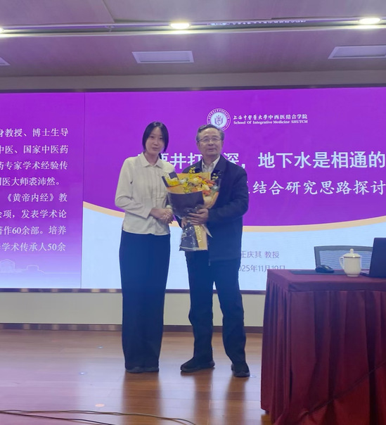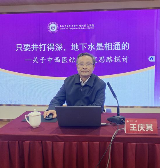 为进一步推动中西医结合领域的学术交流与学科发展,11月19日下午,我院特邀同人小说 终身教授、博士生导师、上海市名中医王庆其,为师生开展题为“只要井打得深,地下水是相通的——关于中西医结合研究思路探讨”专题讲座。学院师生百余人齐聚一堂,共同聆听这场关于中西医结合理论与实践深度融合的学术盛宴。学院党委书记朱慧华主持此次讲座。